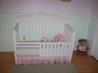While my peanut was napping on Saturday, we heard a thump (not too loud or heavy, but certainly a thump) followed by a cry. Tom, my husband (a.k.a. SmartyPantsDada), ran upstairs to check on the little one. As he reached the top of the stairs he found her standing at her door! Obviously this is not where he left her to nap! He was very surprised to find his little one out of her crib and so he brought her back to the crib, laid her down and left the room, peeking through the entryway to see what would happen. He then witnessed how she got out of the crib. He ran over and caught her as she attempted her acrobatic manner of getting onto the floor. At that point he brought her downstairs to strategize with me on what on earth to do. Note: I recently had major knee surgery that keeps me from climbing the stairs, or pretty much doing anything on my feet.