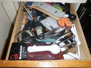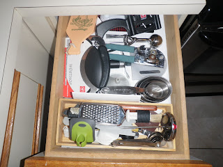 Yes, the February Resolution: Organization continues! I’ve been focusing on my crazy kitchen drawers, you may have noticed. Here’s another random drawer, full of measuring cups, spoons and other nonsense. The after picture doesn’t really give my honest organization justice though!