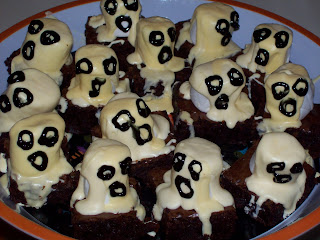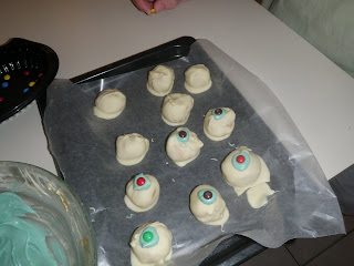 I was asked to bring something for the annual Halloween festivities at my cousin’s home. A great house filled with over 50 mommies, daddies and munchkins – I knew it had to be something all ages would love! Last year I made Brownie Ghosts which were a huge hit! This year I need to kick it up a notch. I searched and searched online and found a yummy, not too complicated treat! Peanut Butter Eyes!!!! I found the recipe n RecipeZaar.com -> http://www.recipezaar.com/Halloween-Eyeball-Cookies-143344