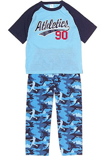 Description: This recall involves long- and short-sleeved pajama sets. The sets have a blue shirt with a red screen print that reads “Athletics 90” and coordinating camouflage pants. The pajama sets were sold in boys’ sizes XXS (2/3) to XL (14).