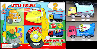 Hazard: The cylinder on the toy concrete mixer and the tailgate on the toy dump truck can detach, posing a choking hazard to young children.