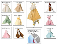 Description: The recalled children’s blankets are 14 inches square with an animal head sewn in the middle. The satin border around the outside edge is about one inch wide. The blankets were sold in the following styles:Style Number Description(Only blankets with a P.O. number of 1330 or below are included in this recall)1327 Cream Lamb1328 Cream/Tan Horse1329 Green Frog1330 Pink Horse1331 Blue Bear1332 Yellow Giraffe1333 Tan Pup1339 Yellow Duck1341 Brown Monkey1351 Pink Bear The style number, followed by the P.O. number, is identified on a white tab sewn into the blankets behind the Douglas red label.