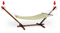 Description: The wooden hammock stands measure about 154 ½ inches long by 53 ½ inches in height by 53 inches in width. There are two black metal brackets on the base and on the arms of the hammock stand. All Pottery Barn two pole wooden hammock stands sold from 2003 through 2008 are included in this recall.