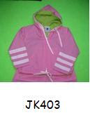 Description: The cotton knit and woven hooded jackets have a drawstring through the hood and waist. They were sold in sizes 12 months through size 10 in a variety of solid colors and prints. “Young Colors” is sewn into the jacket tag located at the neck.