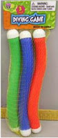 Description: The recalled dive sticks were sold in a bundle of three in multiple colors: light blue, aqua green, fluorescent yellow, royal blue, and red. The tag accompanying the dive sticks contains: “Dive Toys” or “Diving Game” and has a white small parts warning label in the upper right hand corner. The words “Made in China” are printed in the lower right hand corner.