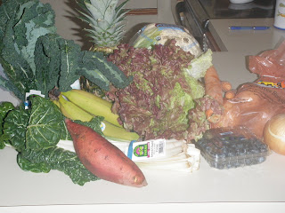The loot has arrived! Monday afternoon little Isa and I picked up our 2 large bags of organic, and much local, produce! Oh yummy! This is what I now have in my kitchen: