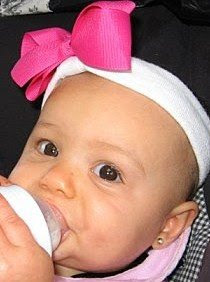 You may notice that a least 75% of the time, my little munchkin is dawning a bow! She was born a baldy, and remained that way until about 14 month or so. Even though her beautiful face, cute little earring and pink outfits would convince most that she was a girl, the bow was always a dead giveaway. I 1st purchased traditional bows on alligator clips, but with her few strands of hair, the bow wouldn’t stay on for more than a minute. I then learned about the infant bands just like ABunchofBows.com has in stock. It was exactly what I/she needed! My mom, a huge fan of bows on little girls, found this website and ordered a dozen bows to clip onto the infant band. It was perfect!