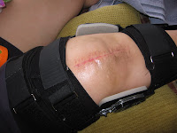 2. Curling up in bed – leg elevated with huge a brace to keep it straight stinks!